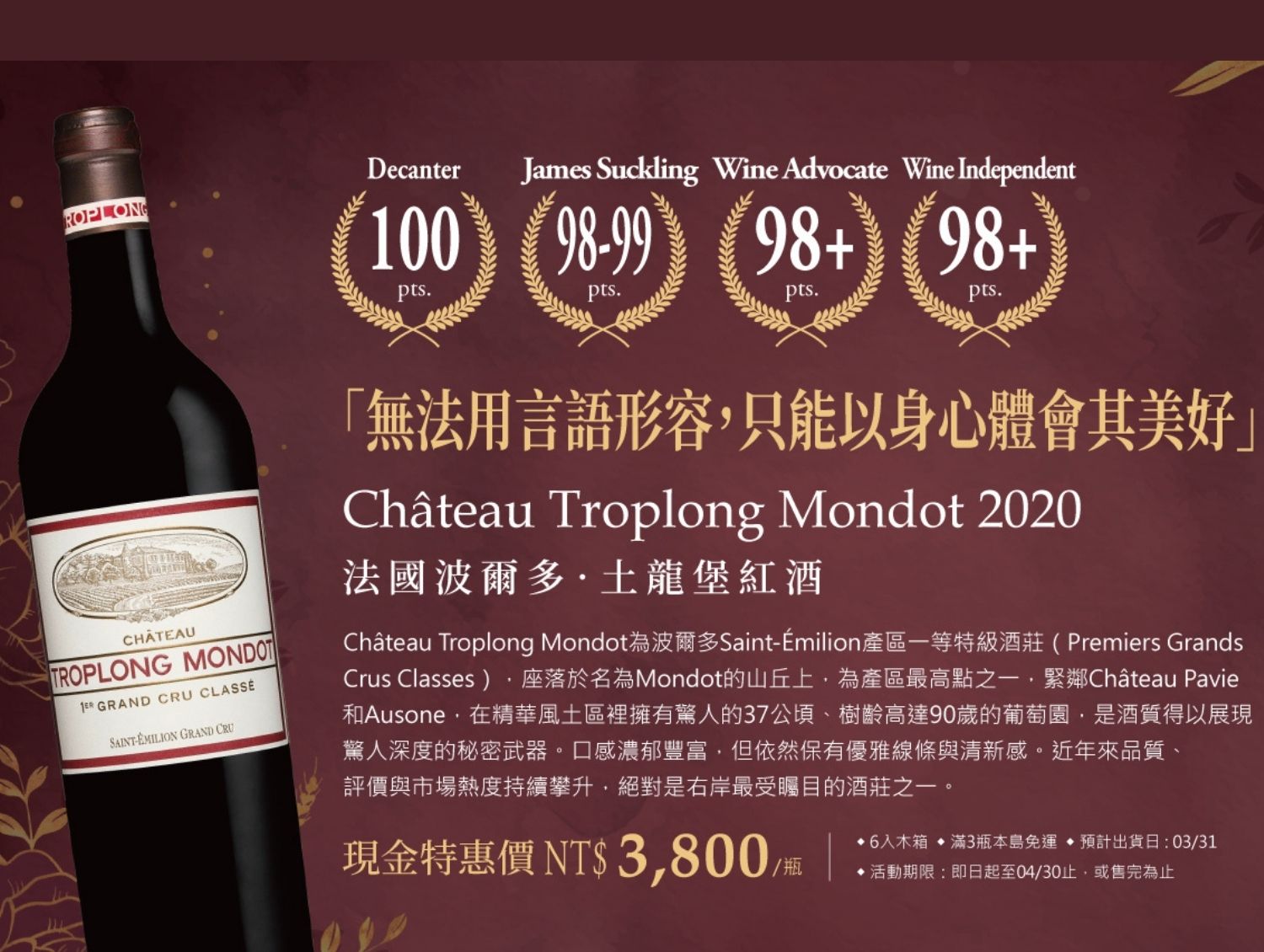 ★ Robert Parker:『跑!別用走的!快跑去拿你的信用卡或支票簿,錢就該揮霍在 Morlet 的酒上!』給予極高推崇的評語!