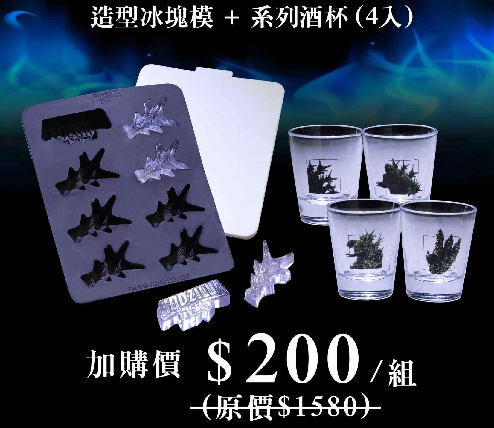 ● 規格:哥吉拉-1.0 款_造型冰塊模 / 哥吉拉-1.0 款_系列酒杯(一組4入)