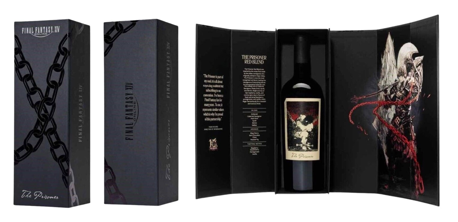 ▲雙酒標設計撕開效果,The Prisoner x FFXIV 酒標